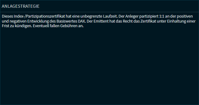 Im Compass-Widget "Anlagestrategie" finden Sie für Zertifikate eine kompakte Beschreibung der Anlageidee des Produkts.