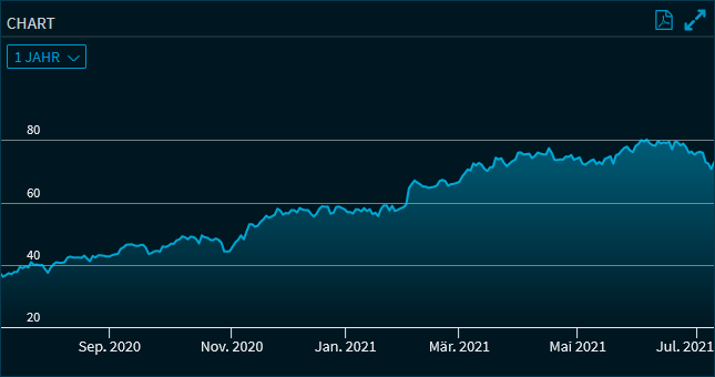 Im Widget "Chart" sehen Sie den Kursverlauf der aktuell ausgewählten Aktie als Chartdiagramm.