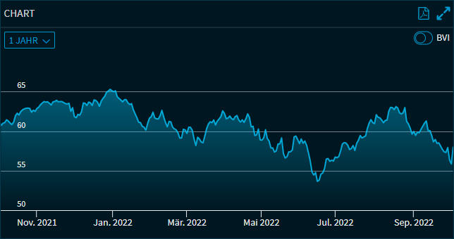 Für Fonds finden Sie im Chart eine weitere Funktion: Ziehen Sie den Schalter "BVI" nach rechts, um im Chart die BVI-Performance anstatt die Kursentwicklung anzuzeigen.