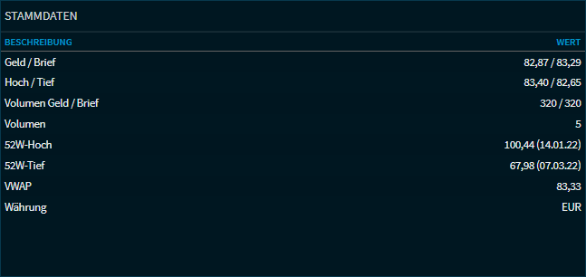 | Geld/Brief | Die aktuellen Geld- und Briefkurse des Wertpapiers. |