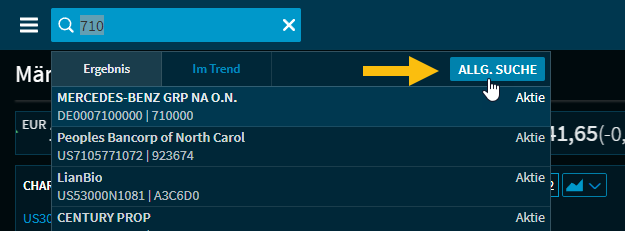 In der (allgemeinen) Suche werden die Wertpapierdatenbanken nach Treffern durchsucht. Gehen Sie wie folgt vor, um eine Suche zu starten: