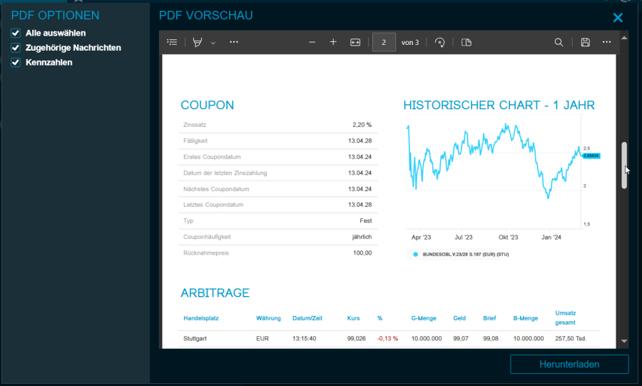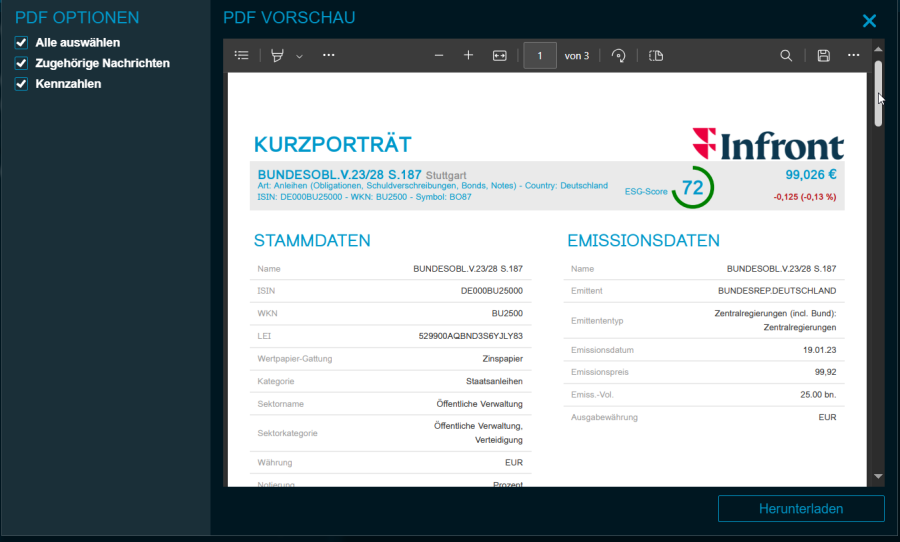 Mit dieser Version steht nun ein gattungsspezifisches PDF-Kurzporträt für Anleihen zur Verfügung.