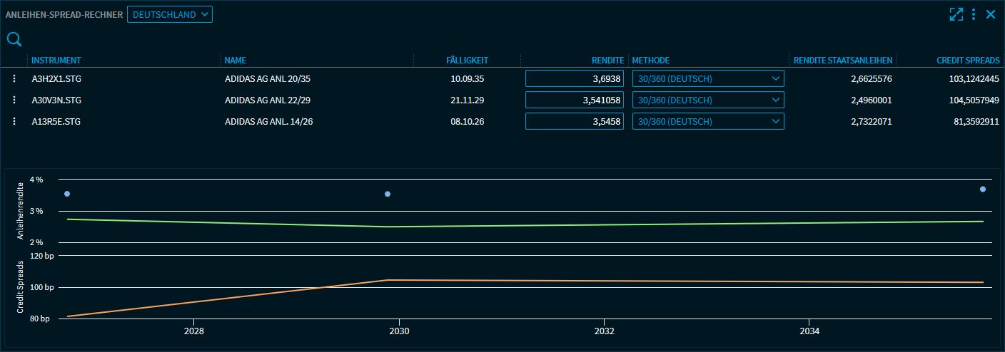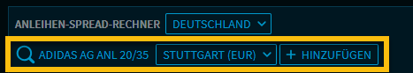 Im Einzelnen finden Sie im Widget "Anleihen-Spread-Rechner" die folgenden Funktionen und Spalten: