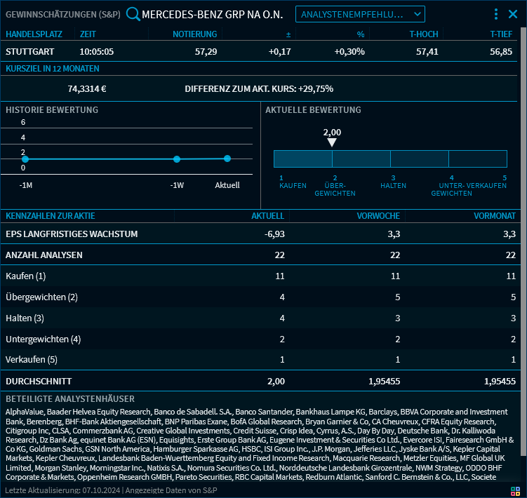 Ansicht "Analystenempfehlungen"