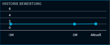 Die Grafik "Historie Bewertung" zeigt analog zur Tabelle die Durchschnittswerte für die Zeitpunkte "Aktuell", "Vorwoche" und "Vormonat". Zeigen Sie in der historischen Bewertung mit der Maus auf die Datenpunkte des Diagramms, um die zugehörigen Werte anzuzeigen.