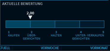 2,00 = (11*1 (Kaufen) + 4*2 (Übergewichten) + 4*3 (Halten) + 2*4 (Untergewichten) + 1*5 (Verkaufen))/22