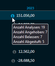 Zeigen Sie auf das Icon vor den Schätzwerten in der Tabelle, um in einem Info-Fenster die Anzahl der zugrundeliegenden Schätzungen einzublenden.