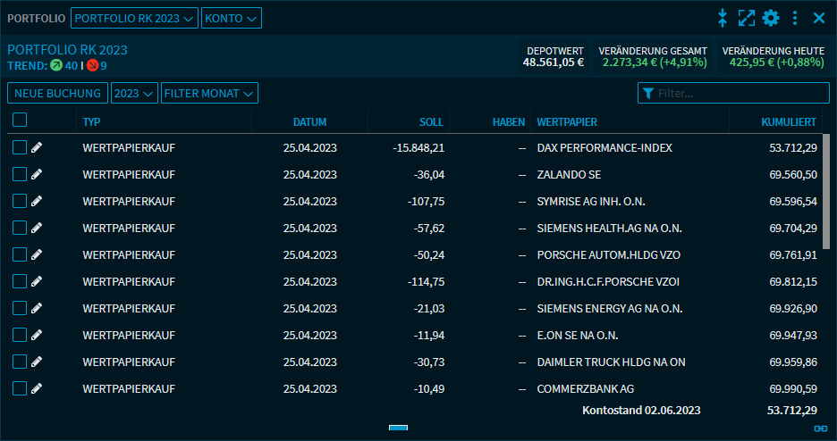 Ansicht "Konto" (Portfolio)