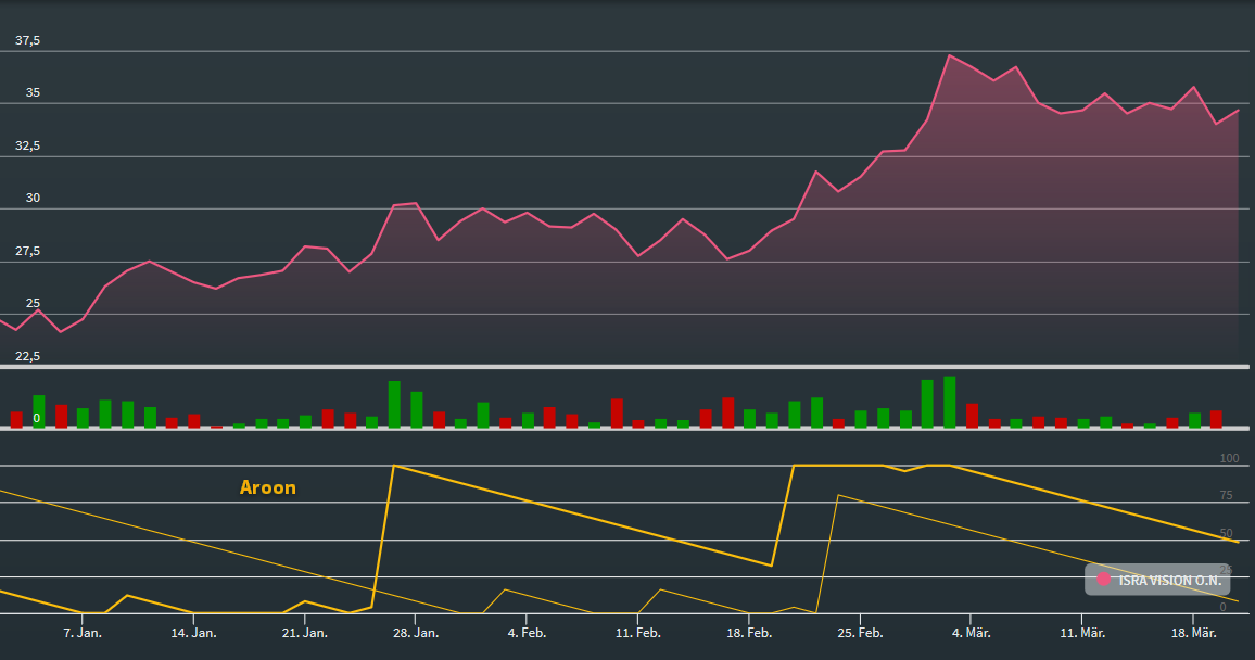 Der Aroon-Oszillator dagegen ist die Differenz von Aroon-Up und Aroon-Down.
