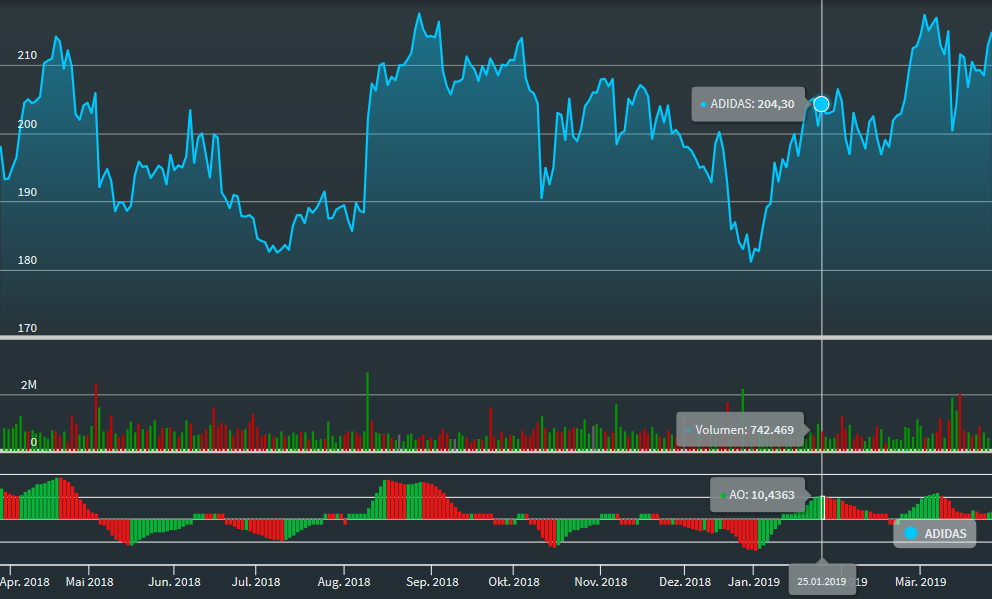 Der Awesome Oscillator wurde von Bill Williams entwickelt und ist ein Indikator, der das Momentum einer Kursbewegung feststellen soll.