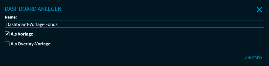 Aktivieren Sie im Dialogfenster "Dashboard anlegen" die Option "Als Vorlage".