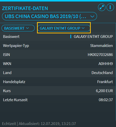 Bereich "Basiswert" im Widget "Zertifikate-Daten"