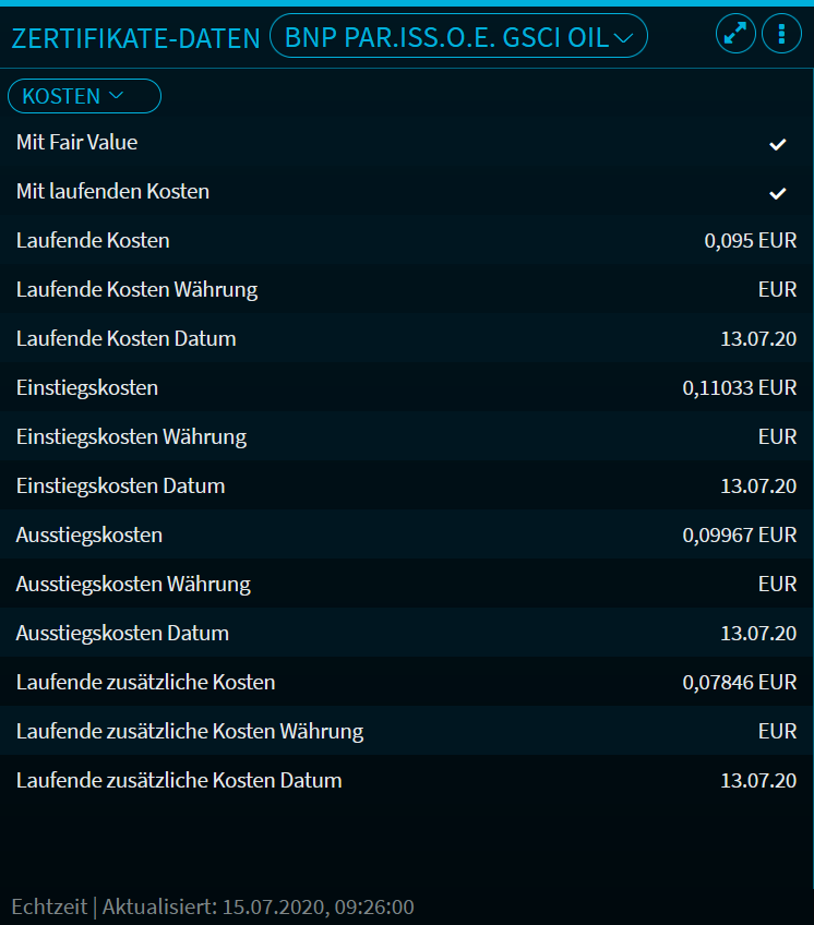 Bereich "Kosten" im Widget "Zertifikate-Daten"