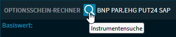 Haben Sie hier einen Optionsschein über die Schnellsuche im Menü ausgewählt, so wird dessen Name oben im Widget angezeigt.