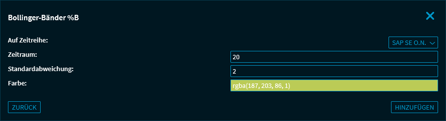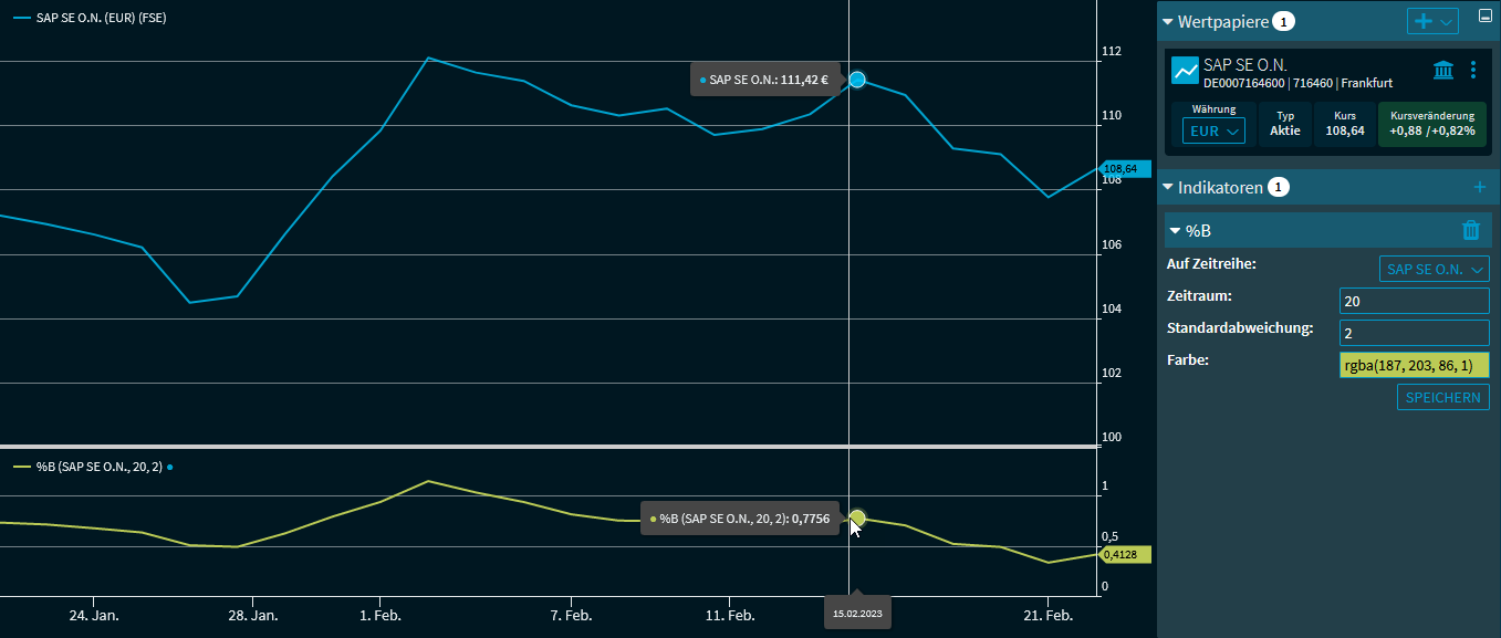 Der Indikator "Bollinger-Bänder %B" zeigt, wo sich der Kurs in Relation zu den zugrundeliegenden "Bändern" befindet.