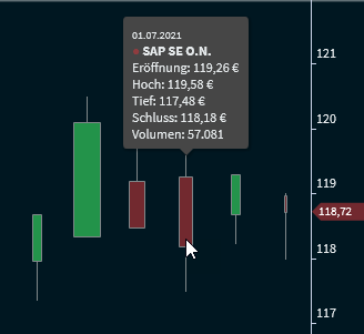 Zeigen Sie auf die Volumekerzen, dann werden die zugehörigen Werte eingeblendet: