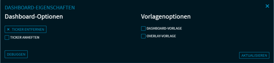 Handelt es sich um eine Dashboard-Vorlage (Kontrollkästchen "Dashboard-Vorlage" aktiviert), dann finden Sie darunter auch die "Vorlagenoptionen":