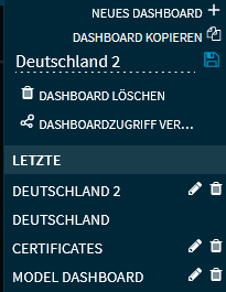 Möchten Sie eines der Dashboards löschen, dann wählen Sie das Icon "Löschen" dieses Dashboards und bestätigen Sie die erscheinende Sicherheitsabfrage mit "Ja".