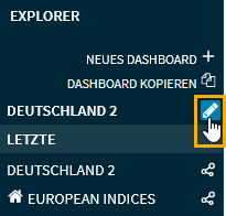 - Öffnen Sie den Dashboard-Explorer und wählen Sie dort das Icon "Bearbeiten".