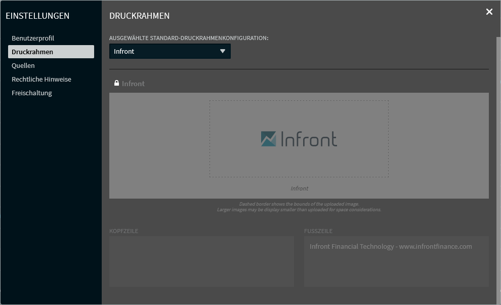Im Infront Investment Manager können Sie - bzw. i. d. R. ein Administrator - für Ausdrucke ein individuelles Drucklayout hinterlegen.