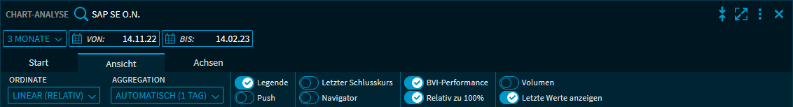 Wechseln Sie im Widget "Chart-Analyse" auf die Registerkarte "Ansicht", um die Chartdarstellung zu konfigurieren.