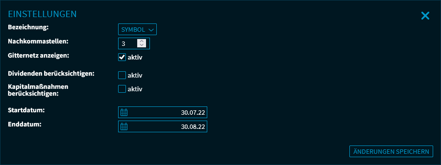 Kapitalmaßnahmen berücksichtigen | Aktivieren Sie dieses Kontrollkästchen, wenn bei der Berechnung der Korrelations-Matrix auch etwaige Kapitalmaßnahmen berücksichtigt werden sollen. |
