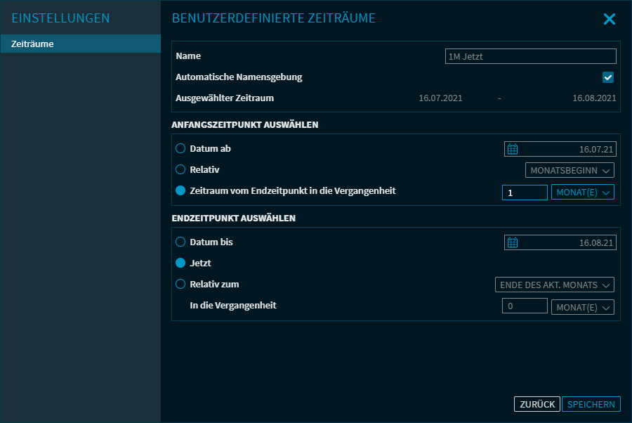Die Einstellungen der benutzerdefinierten Zeiträume im Einzelnen: