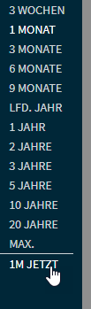 Die definierten und gespeicherten Zeiträume stehen dann im Widget in der Auswahlliste der Zeiträume zur Auswahl zur Verfügung. Die benutzerdefinierten Zeiträume werden unten in der Auswahlliste ergänzt.