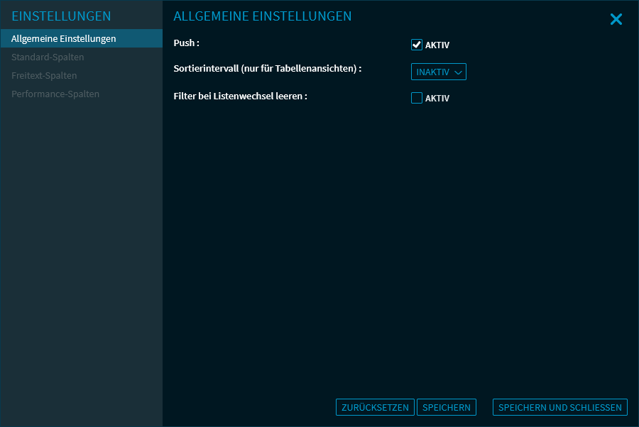 | Push | Hier können Sie über das Kontrollkästchen "Aktiviert" den Push aktivieren bzw. deaktivieren. |