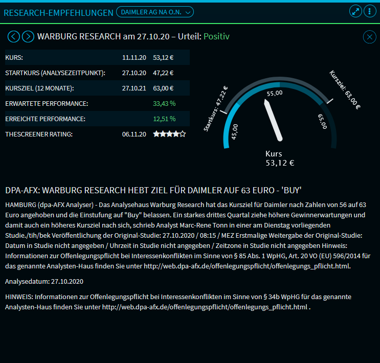 Quelle und Empfehlung | Unter der Wertpapierauswahl finden Sie Informationen zu Finanzanalyst, Analysedatum sowie zur Einschätzung der aktuell ausgewählten Einzel-Empfehlung. |