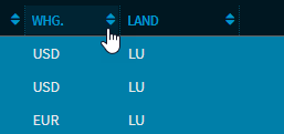 Nach Spalten sortieren | Sie können die Ergebnisliste nach verschiedenen Spalten per Mausklick auf die Spaltenüberschrift sortieren. Die sortierfähigen Spalten sind durch ein Symbol in der Spaltenüberschrift gekennzeichnet: