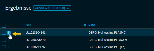 Im Einzelnen stehen Ihnen in den Ergebnislisten eines Screeners die folgenden Funktionen zur Verfügung: