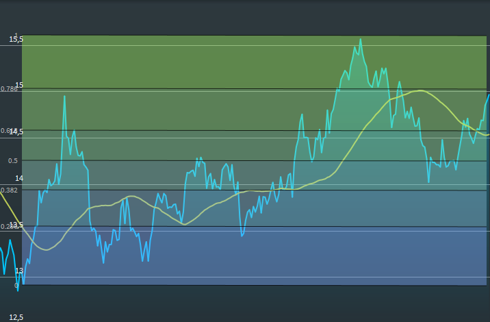 Im Chart werden parallele Linien zu den folgenden Werten (Fibonacci-Retracements) gezogen:
