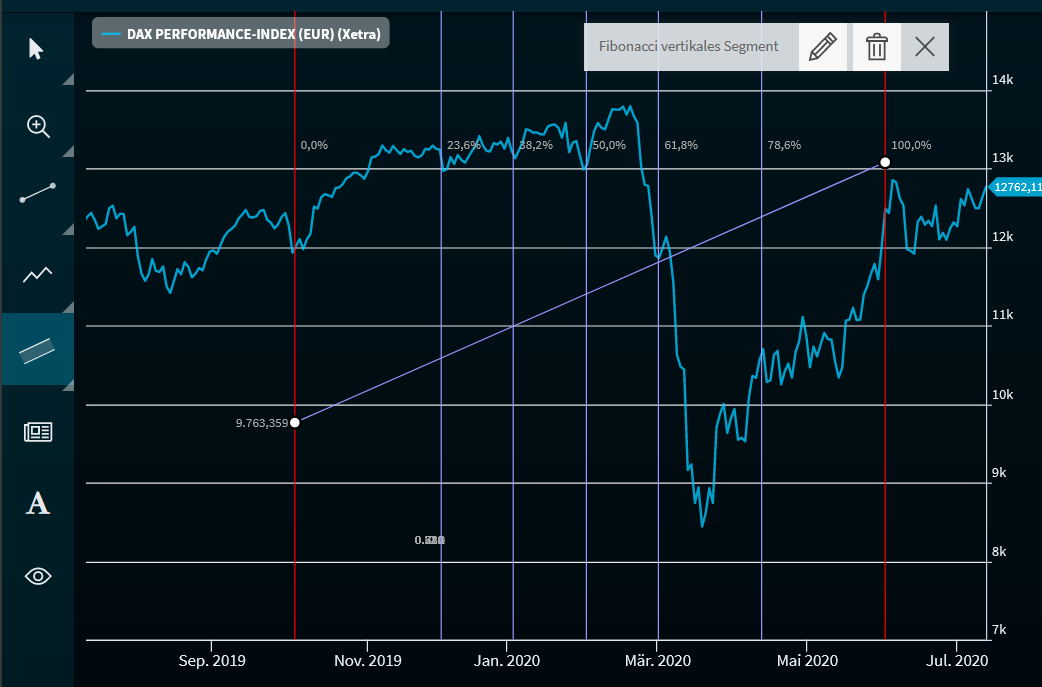 - Wählen Sie im Menü des Buttons "Fibonacci" den Eintrag "Fibonacci Vertikales Segment".