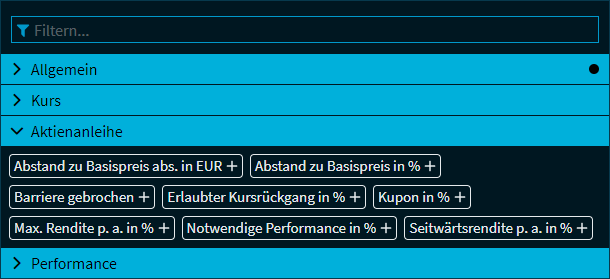 Filter in Zertifikate-Screens (Wertpapier-Gruppe "Aktienanleihe")