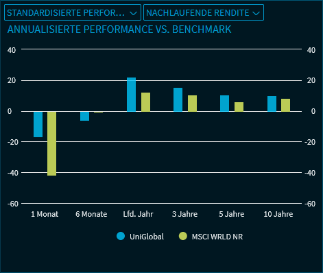 Über die Auswahlliste in der Ansicht "Standardisierte Performance" können Sie folgende Einträge für das Diagramm auswählen: