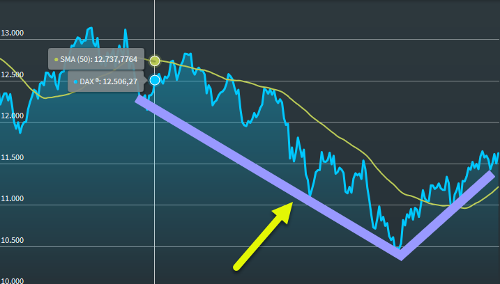 - Klicken Sie dann in den Chart auf die gewünschte Anfangsposition der Linie und lassen Sie die Maustaste los.
