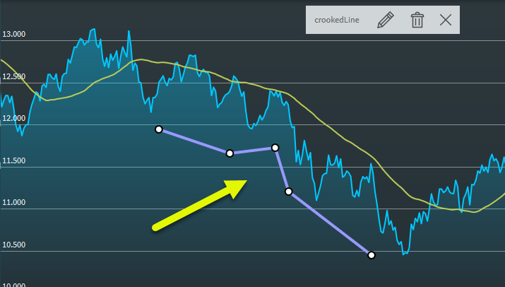 Nutzen Sie dieses Werkzeug, um "gekrümmte" Linien in den Chart einzuzeichnen. Gehen Sie wie folgt vor, um die Variante mit 4 Teilstrecken und 5 Punkten einzuzeichnen: