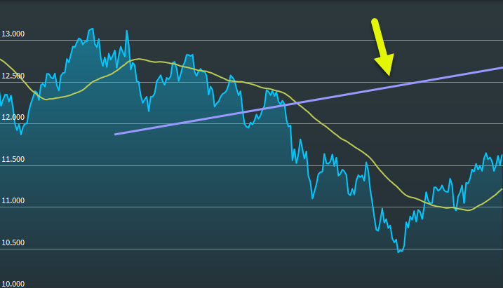 Nutzen Sie dieses Werkzeug, um eine (unendliche) Gerade in den Chart einzuzeichnen. Gehen Sie dazu wie folgt vor:
