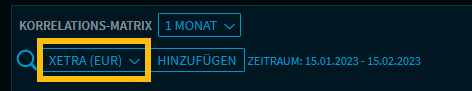 Über die Handelsplatzauswahlliste können Sie einen Handelsplatz für die Korrelations-Matrix auswählen. Auf dem Button sehen Sie stets den aktuell ausgewählten Platz (hier "Xetra").