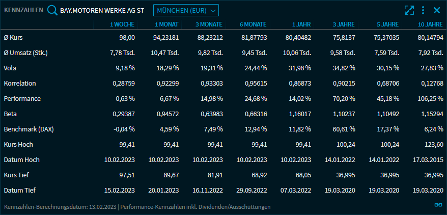 Für diese Zeiträume werden folgende Kennzahlen berechnet: