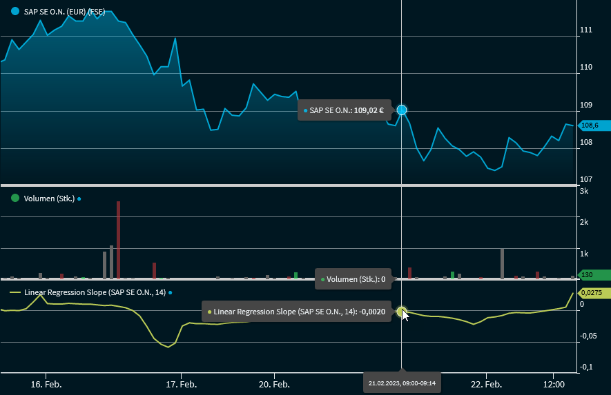 Der Linear Regression Slope liefert die Steigung ("Slope") der linearen Regressionsgeraden.