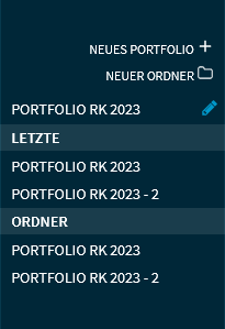 - Möchten Sie ein neues Portfolio anlegen, dann wählen Sie den Befehl NEUES PORTFOLIO auf der entsprechenden Ordnerebene.