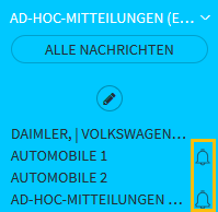 Die Suchkriterien Ihrer aktuell im Widget "Nachrichtenübersicht" konfigurierten Suche können Sie als Nachrichten-Alert speichern, damit Sie beim Eintreffen passender News sofort benachrichtigt werden. Gehen Sie dazu wie folgt vor: