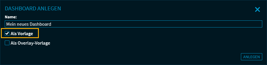 Aktivieren Sie dazu im Dialogfenster "Dashboard anlegen" die Option "Als Vorlage".