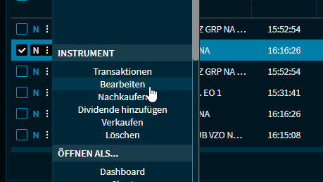 Sie können Positionen eines Portfolios jederzeit bearbeiten. Gehen Sie dazu wie folgt vor: