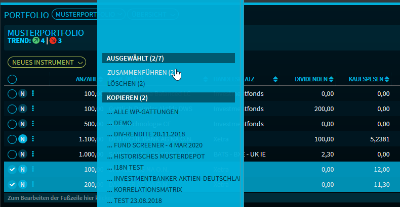 Positionen von identischen Wertpapieren am selben Handelsplatz können nun zu einer Position zusammengeführt werden.