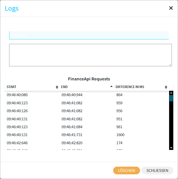 Der "Filter-Logger" zeigt die einzelnen Datenblöcke mit Start- und Endzeitpunkten in Millisekunden.