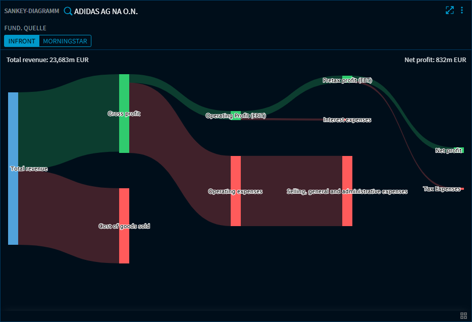 Über die Buttons über dem Diagramm können Sie zwischen Infront- und Morningstar-Daten wechseln.