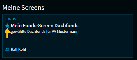 Auf der Screener-Startseite können Sie Screens als Favoriten markieren. Klicken Sie dazu auf den Stern in der Kachel des gewünschten Screens: